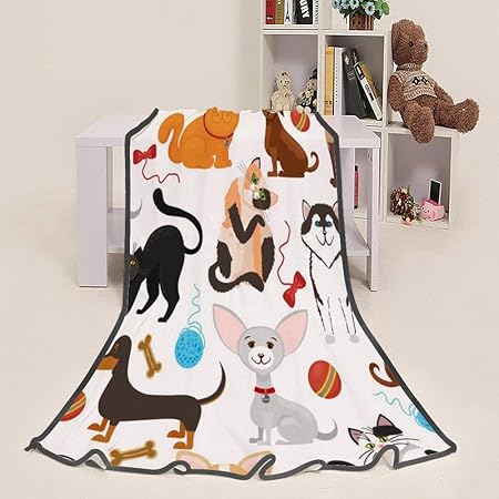 Amazon フランネル 毛布 薄い毛布 動物柄 猫 犬ブランケット
