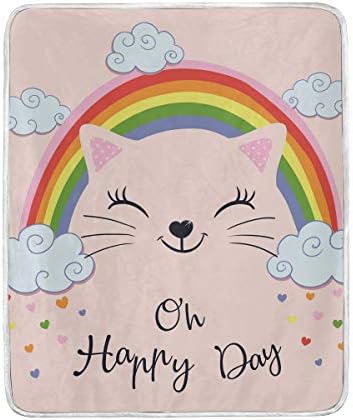 Luyisi ひざ掛け 猫柄柄 レインボー ピンク 二枚合わせ 厚手 柔らかい