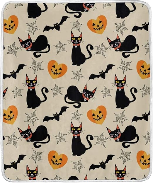 Amazon Luyisi ひざ掛け 猫柄 コウモリ ハロウィン 二枚合わせ 厚手