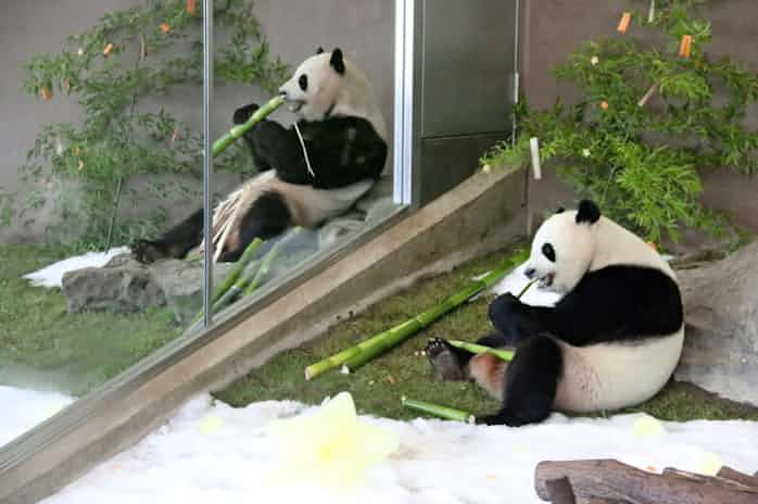 パンダに餌やりも 大家族パンダに会いにアドベンチャーワールドへ