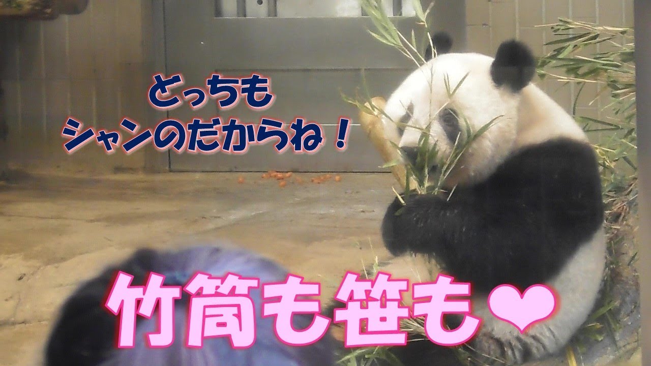 11 13欲張りシャンシャン 竹筒抱えて 笹をモグモグ どっちもシャン