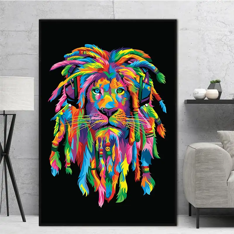 カラフルな動物絵画ライオンズ壁アート Quadro ポスター壁プリント塗装