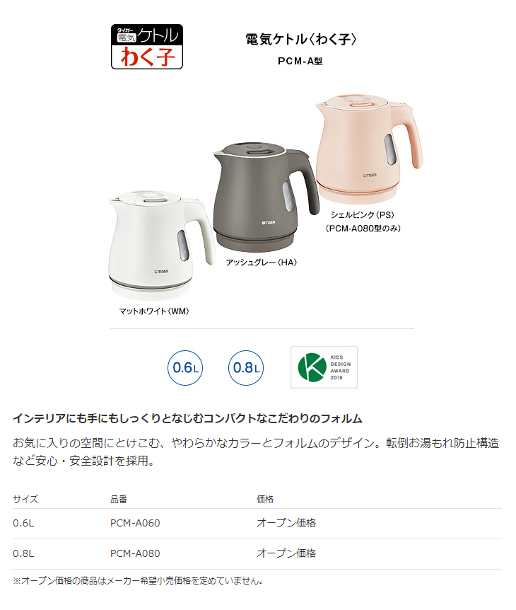 新発売 電気ケトル わく子 Pcm A060 A080 タイガー魔法瓶のプレス