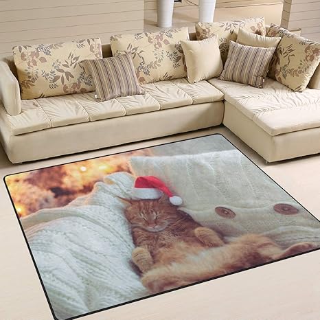 Amazon ラグ カーペット 猫柄 クリスマス 洗える 滑り止め付 120 160