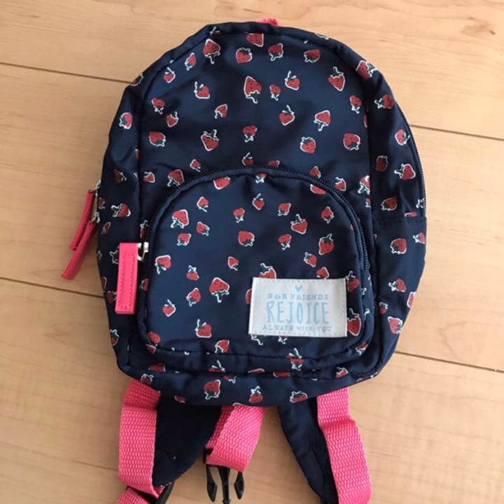 メルカリ Bebe ネイビー ビビッドピンク 赤イチゴ柄 ベビーリュック バッグ 999 中古や未使用のフリマ