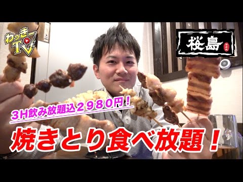 やきとり食べ放題で3時間飲み放題 鹿児島県産地鶏使用 桜島