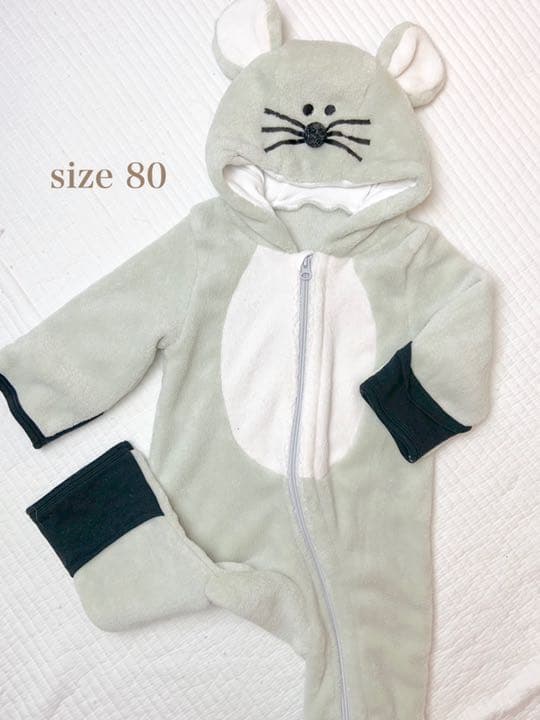 メルカリ ねずみ ボア生地 防寒 着ぐるみ アウター カバーオール 80