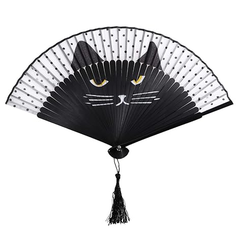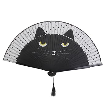 Amazon Bestoyard かわいい猫折りたたみシルクファンハンドヘルド竹