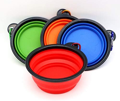Klcclmki 4個セット 折りたたみ式 ペットボウル カラビナ 付き 早食い