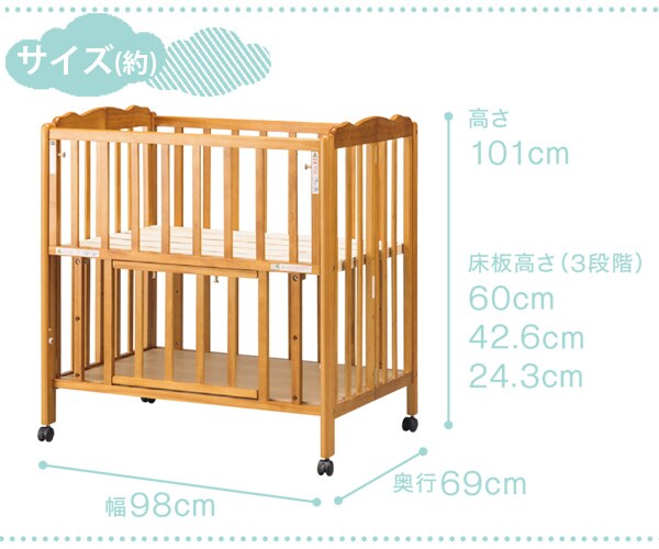 ベビーベッド レンタル 3ヵ月 ベビーベッド チェリー 4輪キャスター