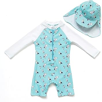 Amazon Co Jp Bonverano ベビー 水着 Upf50 Uvカット 男の子 長袖 ワンピース ラッシュガード キャップ付き Pelican 62 68cm ベビー マタニティ