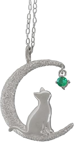 Amazon Novel ノベル 月猫ネックレス 誕生石対応 5月誕生石 猫