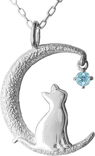 Amazon Novel ノベル 月猫ネックレス 誕生石対応 3月誕生石 猫