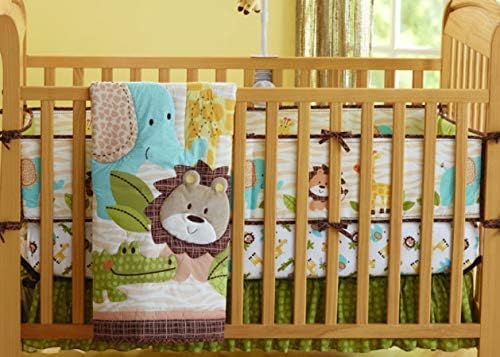 ベビーベッド寝具セット7ピース 100 オーガニックナチュラルコットンベビーベッドセット イエロー グリーン保育園寝具セット ユニセックスの男の子と女の子 超安い かわいいライオンサファリ バンパーパッドを含む