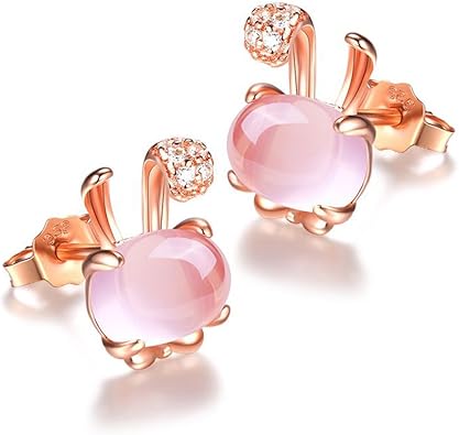 Amazon 比翼堂 ピアス レディース ローズクォーツ 動物モチーフ