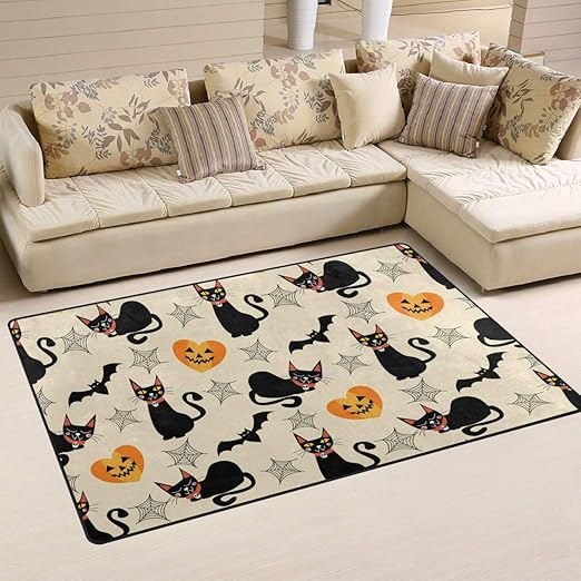 Amazon Sukau ラグ カーペット 猫柄 コウモリ ハロウィン 洗える 滑り
