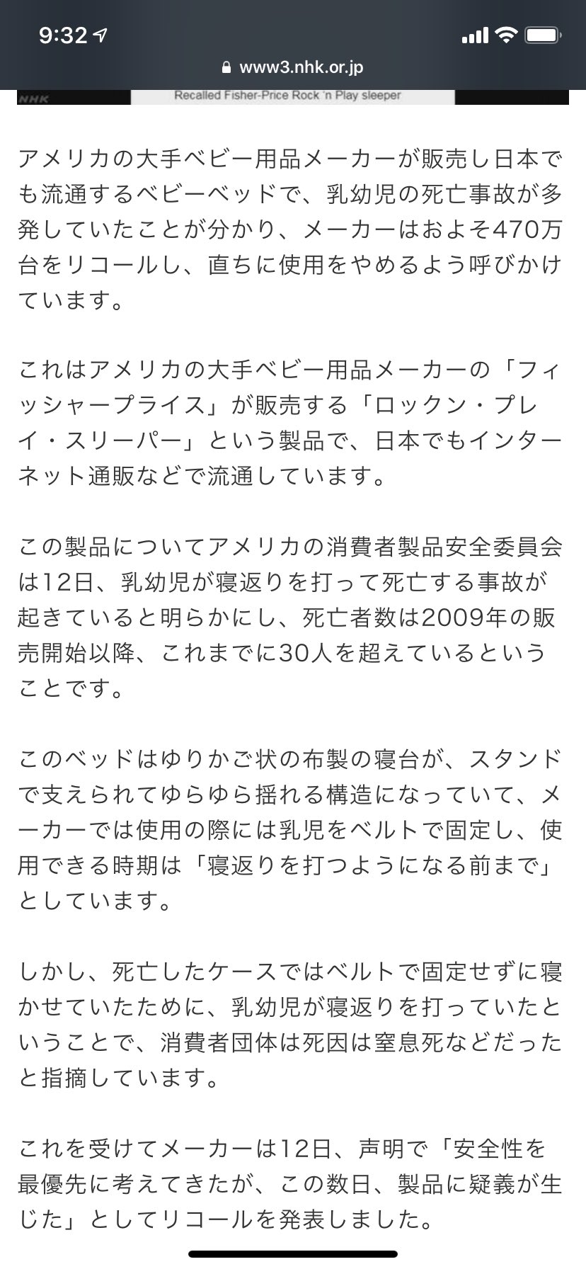 米製ベビーベッド 死亡事故newsまとめ フィッシャープライス ロックン
