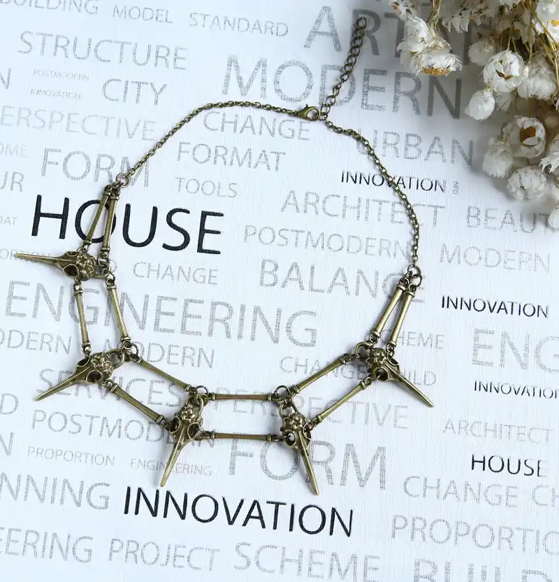 レイヴンペンダントネックレスアンティーク真鍮鳥の頭蓋骨 チョーカー