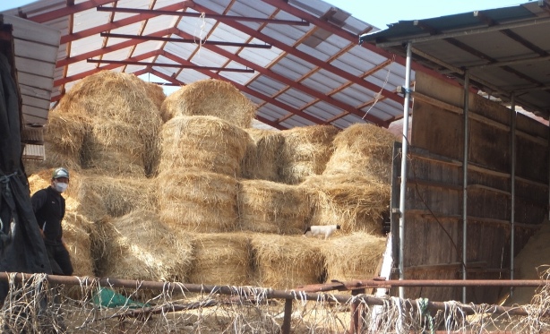 島の鳥見日記2 時々猫と草花 牛舎に鳥が集まっている