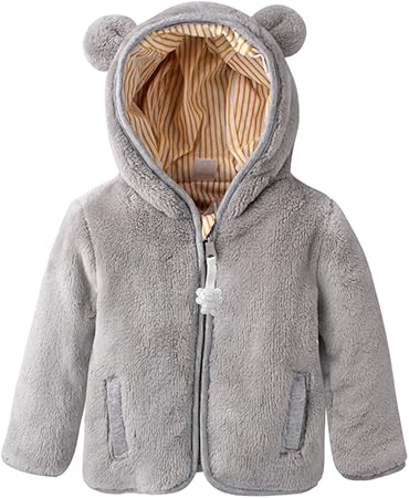 Amazon C Princess ふわふわ ベビーコート 厚手 防寒 ジャケット アウターウェア耳付き クマちゃん かわいい 子供服 キッズ 女の子 男の子 通園 冬 グレー 90 コート