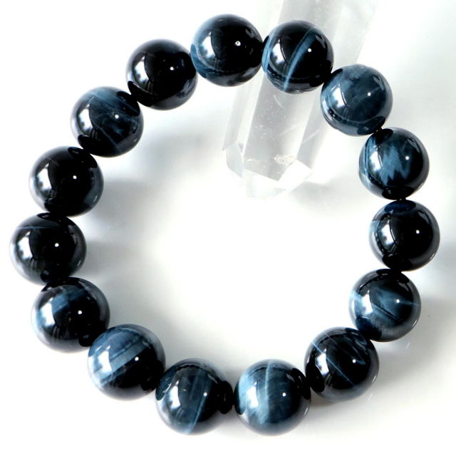 ブルー タイガーアイ ブレスレット 14mm 高品質 キャッツアイ 青虎目