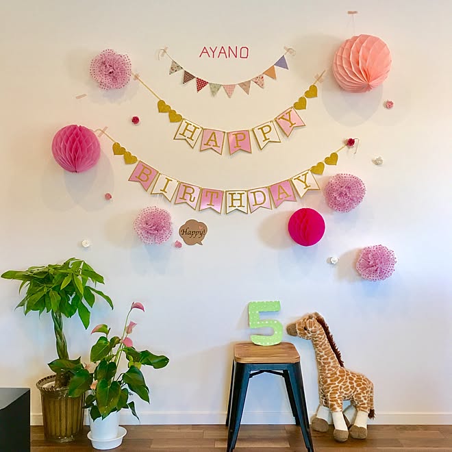 壁 天井 きりんも何気に 誕生日飾り付け パキラ 観葉植物のインテリア