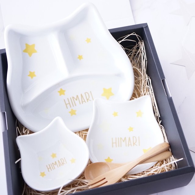 81 Airie 名入れ食器セット ねこ 猫 ベビーキッズ食器3点セット