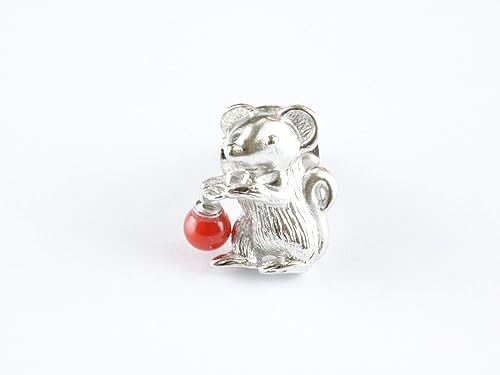 Amazon 日本産 赤 サンゴ 珊瑚が揺れる ブローチ 十二支 干支 ネズミ