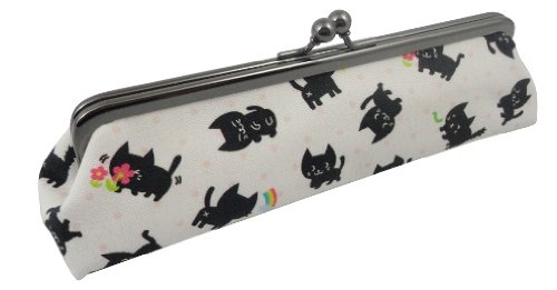 Amazon ミドリ ペンポーチ がま口 キルティング加工 黒 ネコ柄