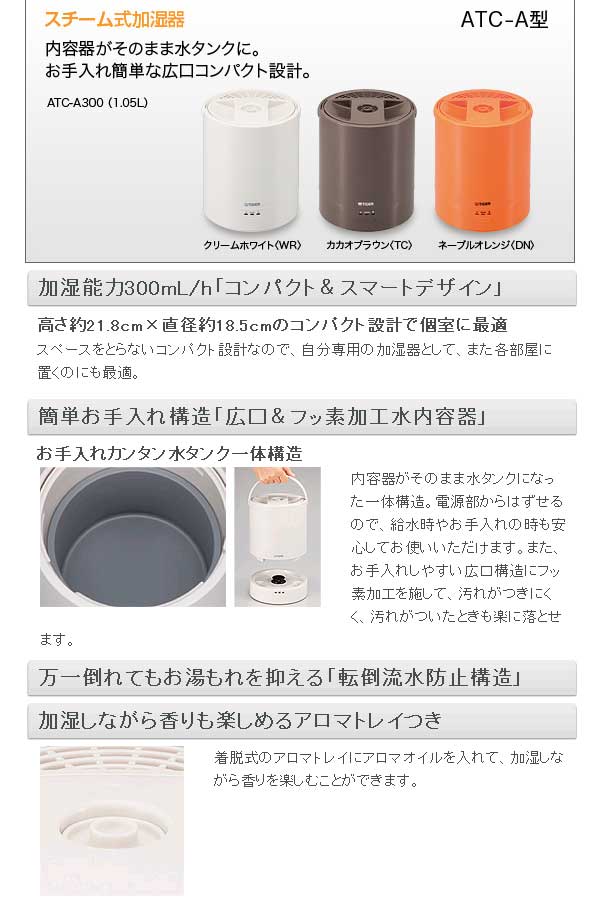 環境快適商品 スチーム式加湿器 Atc A300 製品情報 タイガー魔法瓶