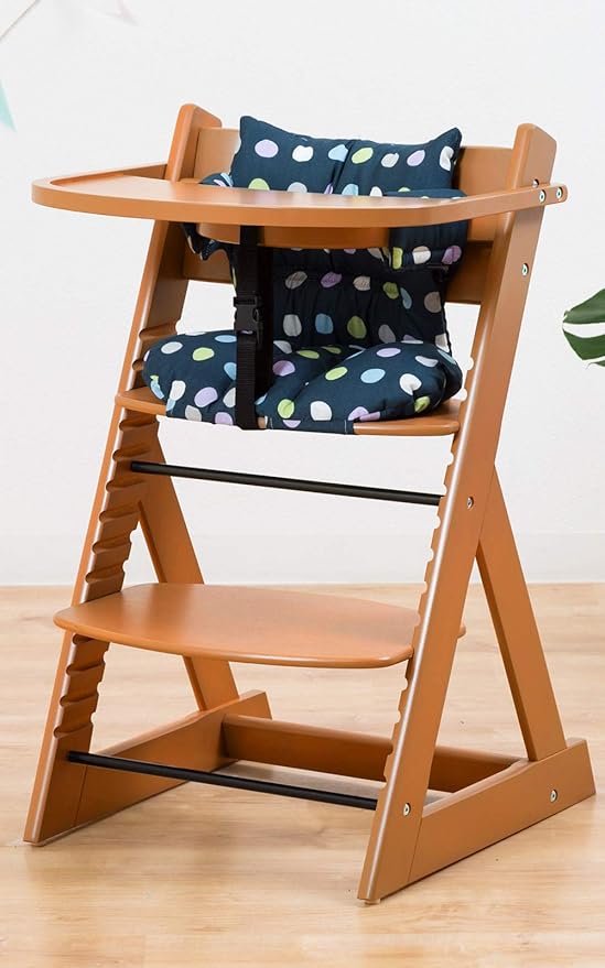 Amazon Co Jp システムk ベビーチェア マジカルチェア クッションセット 専用クッション 高さ調節 テーブル付き チェアブラウン クッション大水玉ネイビー ホーム キッチン