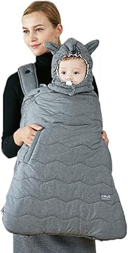 Amazon 抱っこ紐ケープ 抱っこひもカバー 防寒 ベビーカー対応 ベビーを冷たい風からガード 保温性抜群 新生児 3歳 グレー 抱っこひもカバー ケープ ベビー