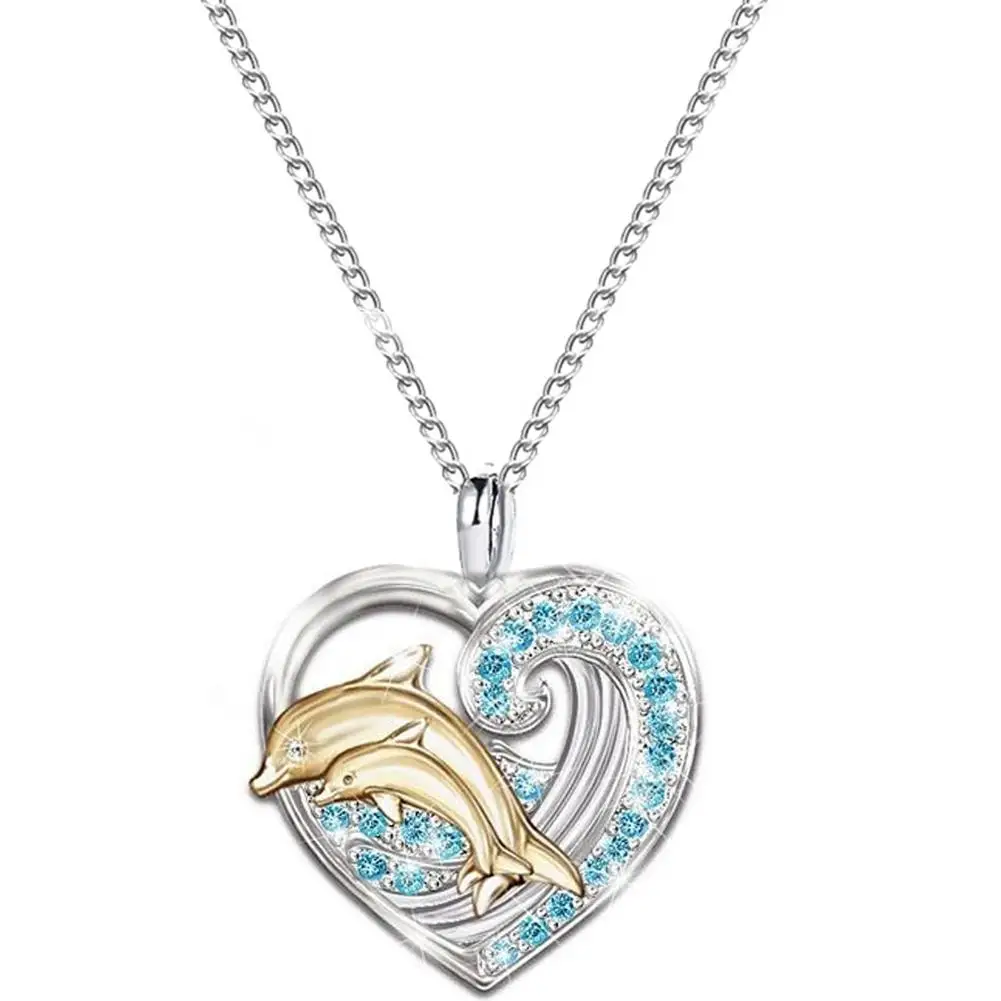 ホット 女性中空ハートイルカのラインストーンチェーンネックレス