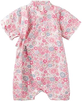 Amazon 女の子可愛い甚平 ロンパース 綿100 ピンク 70 ベビー