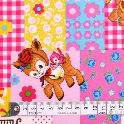 Amazon 50cm 数量 5 から 10cm単位でカットいたします 商用利用ok パッチワーク風の花畑とレトロアニマル ラミネート 厚み0 1mm 生地 ハンドメイド 手作り用生地 商用利用