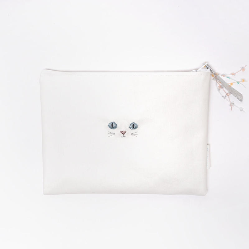 送料無料 Pinpignonマスクポーチ けっぺき白猫 両面ラミネート生地で拭き掃除可能