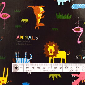 楽しい 生地 布 入園入学 Lalala Penpen ラミネート生地 幅105cm手ざわりサラサラ つや消しタイプ ふつう厚 巻き芯発送対応 10cm単位販売 動物 北欧 黒