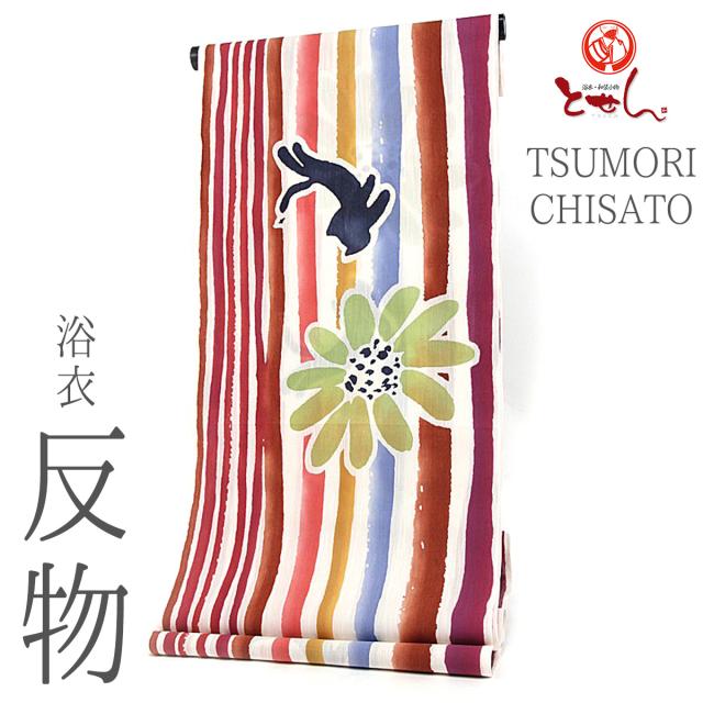 人気 ツモリチサトtsumori Chisatoカラフル縞 花とネコ浴衣綿100