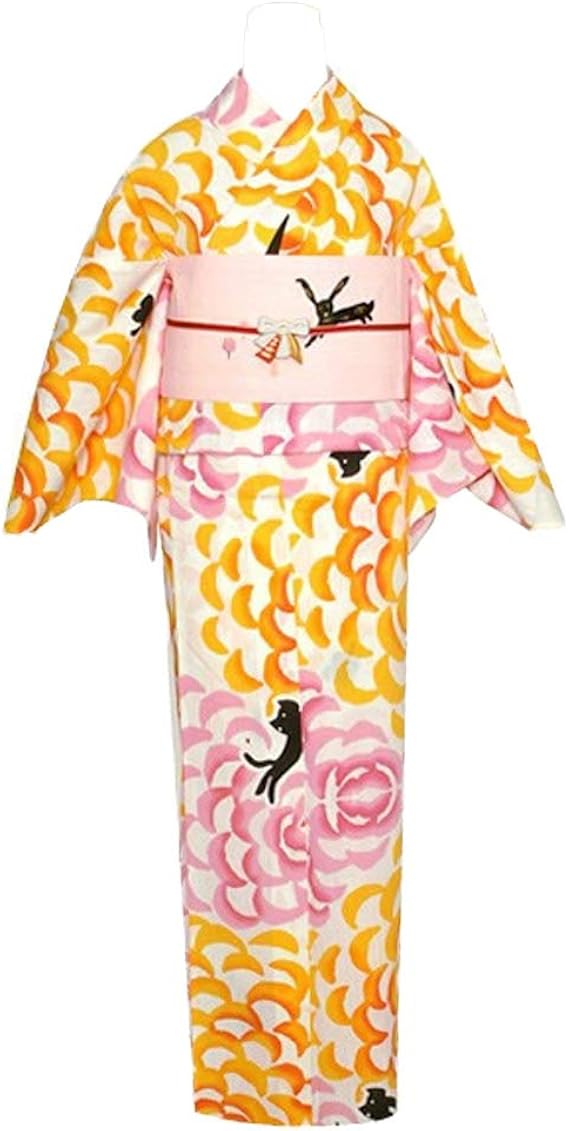 Amazon 京都きもの町 女性 浴衣 白色 ダリアと猫 ツモリチサト