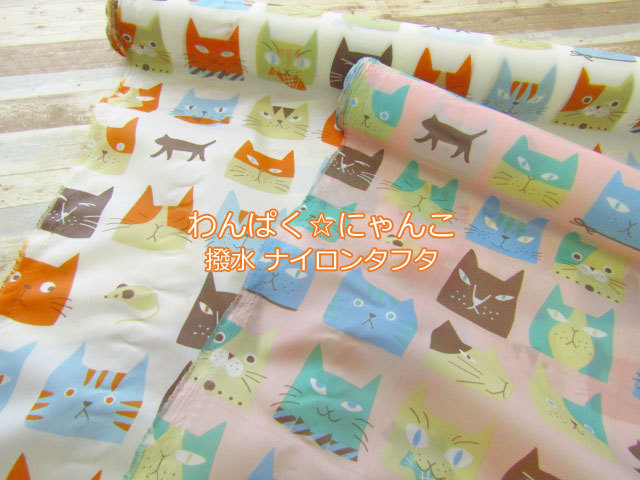 楽天市場 撥水加工 ナイロンタフタ生地 並んだネコちゃん柄 ともや