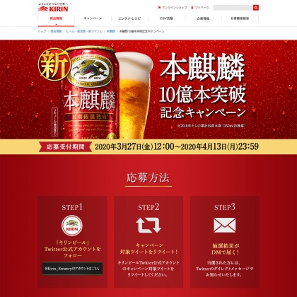 Twitter懸賞 キリンビールより 新しい本麒麟は最高の本麒麟