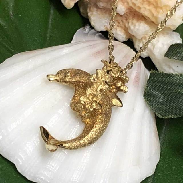 ハワイアンジュエリー 14k シンガポールチェーン付きドルフィン