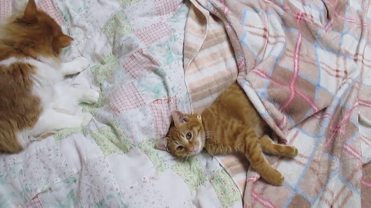 猫が電気毛布を占領 かわいい2匹の猫ハッチとマック 癒し動画