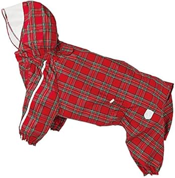 Amazon 犬用 両足付レインコート タータンチェック 5号 レッド