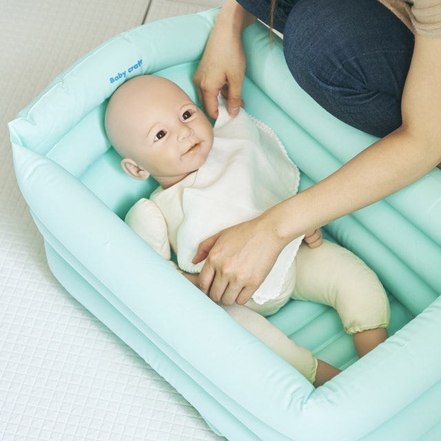 大人気のビニールバス ふかふかベビーバスはママの腕の負担を軽くした