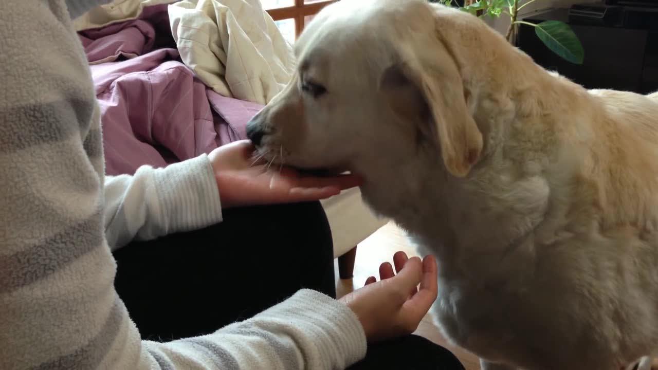 爱狗主人 拉布拉多犬舔完女主的脸蛋又去舔脚 再过来舔脸