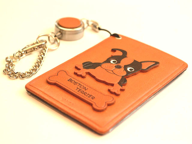 ボストンテリア 犬 定期入れ パスケース 革 レザー メール便送料無料
