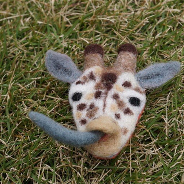 羊毛ブローチ 肉食シリーズ ベロが動くキリン 大 ハンドメイドマーケット Minne