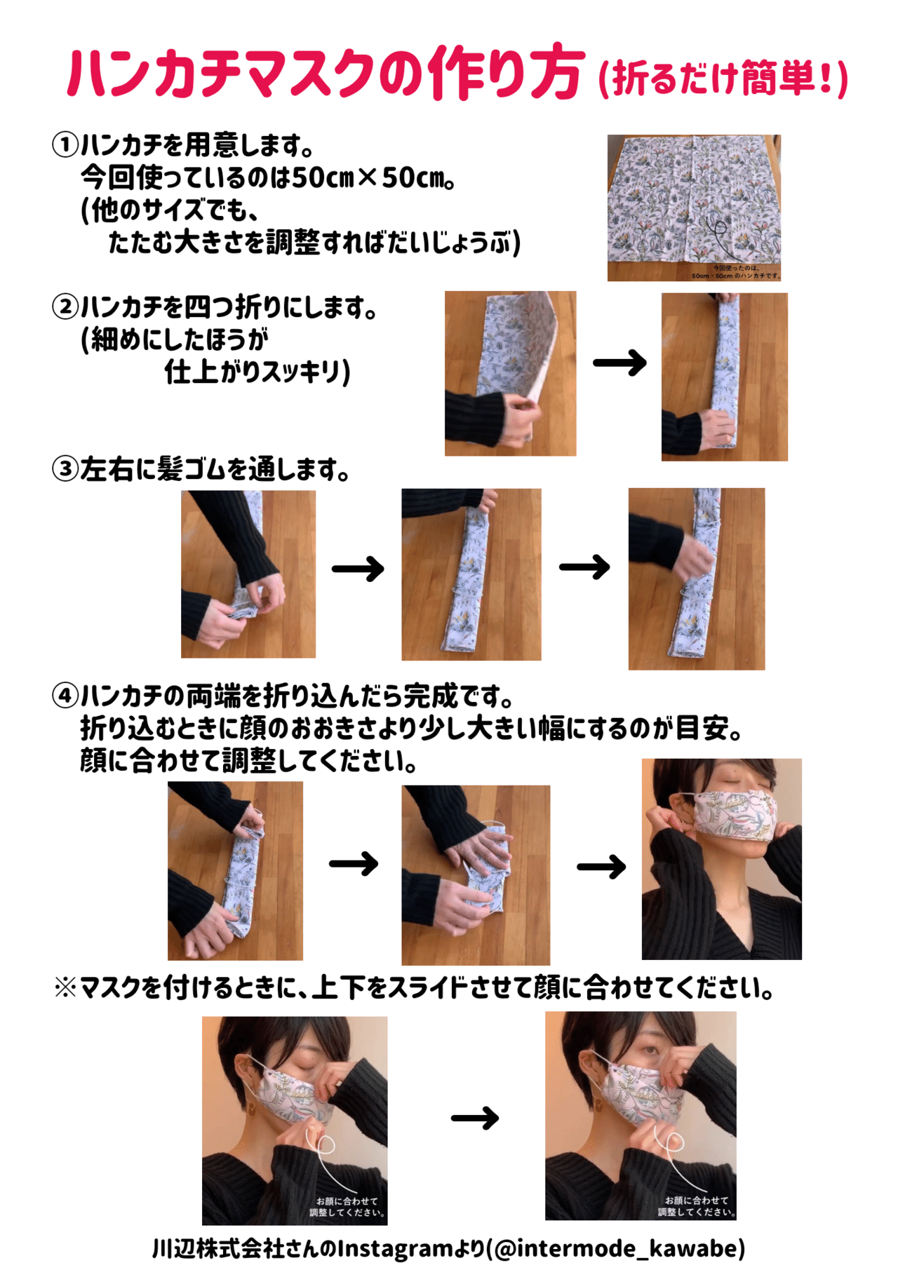 折るだけ簡単 ハンカチマスクの作り方を紹介 マスク不足の救世主か