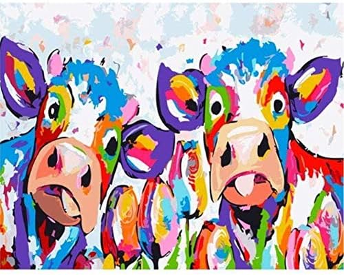 お金を節約 Hnzyf Diy油絵デジタル抽象的なカラフルな牛動物キャンバス